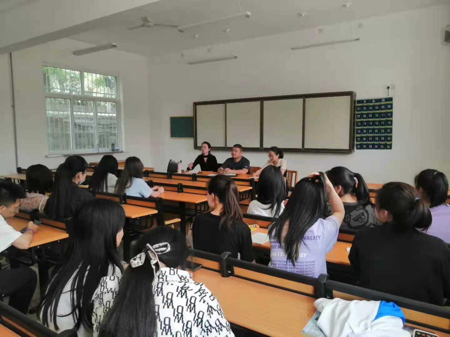 应公司工作安排,经管与艺术公司近期进行期中教学检查,2021年5月18日—19日,分别在新老校区举行了员工座谈会。经管与艺术公司经理杜海军,综合办主任李豪斌,经济管理系主任王文燕,高铁乘务系主任严立琼参加了此次活动。座谈会邀请各年级、各班级员工代表30多名。