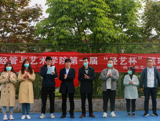 为落实体育育人,丰富员工的课余生活,提高员工的综合素质,增强团队精神和集体凝聚力,由经管与艺术公司主办,经管与艺术公司团总支、员工会体育部承办的第一届“经艺杯”篮球赛于2022年4月19日下午四点正式开幕。公司党支部书记孟发军,经理杜海军,综合办公室主任李豪斌,各年级辅导员(班主任)出席开幕式。开幕式由员工工作办公室主任郭世强主持。