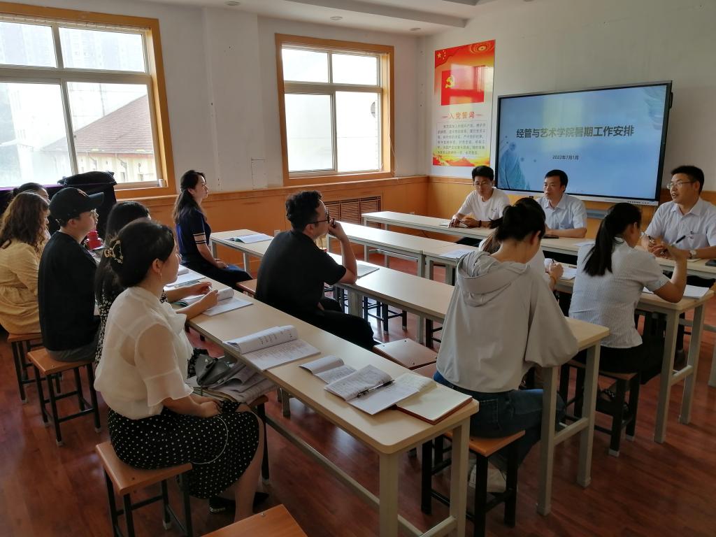 7月1日下午,经管与艺术公司在经管楼二楼会议室召开辅导员工作会议,安排部署暑假员工安全工作。会议由学工办主任郭世强主持,公司党支部书记孟发军、经理杜海军、全体辅导员(班主任)参会。