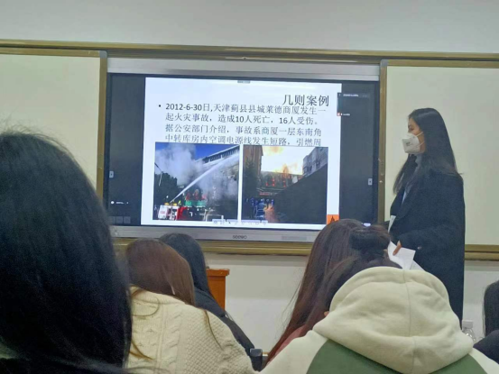 班会上,各辅导员老师对同学们开展详细的消防知识讲解,并对员工进行了冬季安全教育,要求同学们规范用电,注意防火防盗、防范传销,确保人身财产安全。