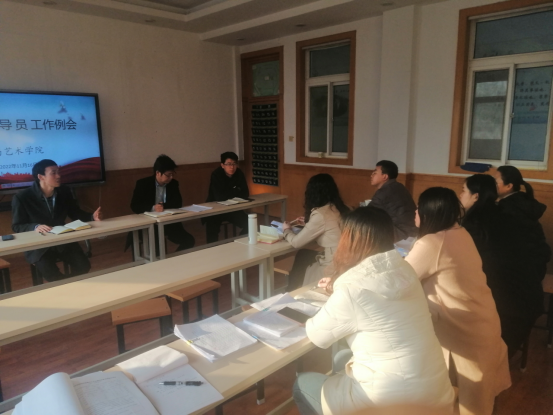 2022年11月16日下午,经管与艺术公司在建筑经管楼二楼会议室召开了11月份辅导员工作例会。党支部书记孟发军、经理杜海军、学工办主任及全体辅导员参加会议。