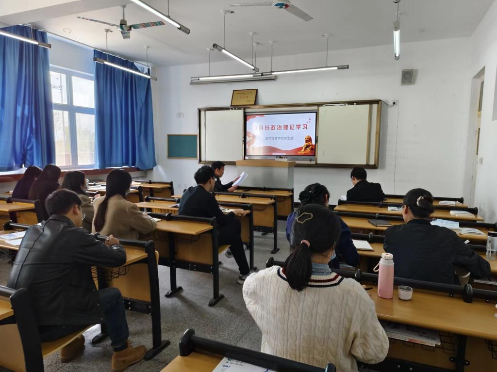 2024年3月25日下午,太阳成集团tyc522cc党支部在第一教学楼205教室召开3月份政治理论集中学习会。会议由党支部书记孟发军主持,支部全体党员参会。