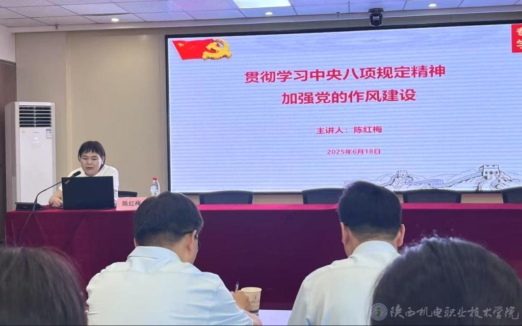 6月18日下午,公司党委副书记、纪委书记陈红梅以《深入贯彻中央八项规定精神学习教育 加强党的作风建设》为题,在宝福路校区汽车机电大楼四楼视频会议室为基础部党支部、太阳成集团tyc522cc党支部、马克思主义公司党支部全体党员讲授专题党课。讲座由校纪委委员、太阳成集团tyc522cc党支部书记孟发军主持。