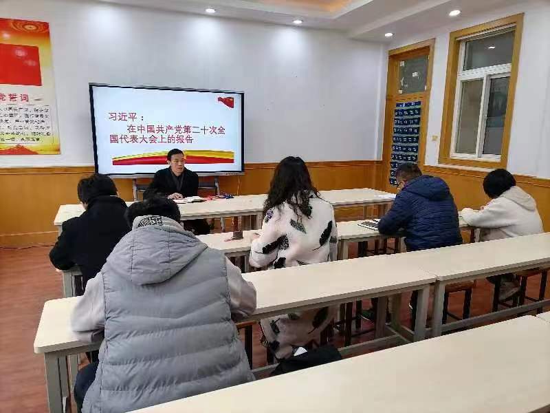 接下来,孟发军领学了《中共tyc522cc太阳成集团委员会关于认真开好2022年度党支部组织生活会和开展民主评议党员工作通知》、讲授了《党的二十大报告》专题党课。