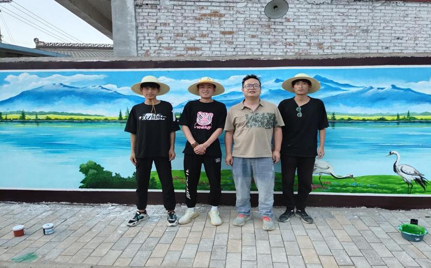 为全面贯彻落实国家实施乡村振兴战略,助力乡村振兴,发挥教育资源优势,进一步深化产教融合,2022年6月15日,经管与艺术公司受麟游县崔木镇人民政府的邀请,由公司美术老师赵刚刚任领队,带领余明、张玺林、邓永超3名员工,师生们拿起画笔在崔木镇开展了为期四天的助力乡村振兴公益活动。