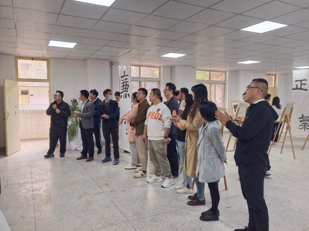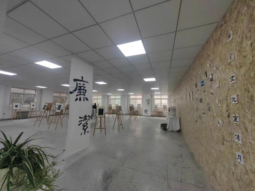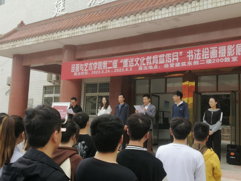 为深入开展廉洁宣传教育,培养师生的廉洁观念,努力构建和谐、平安、文明校园。经管与艺术公司结合自身情况,围绕“廉洁”这一主题开展书法绘画摄影展。经管与艺术公司党支部书记孟发军,经理杜海军,及经管与艺术公司全体师生参加了此次活动。