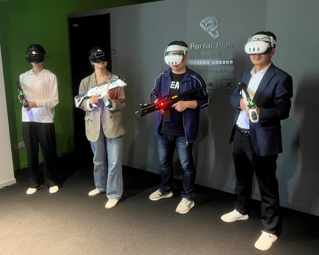 5月8日,走访了上海曼恒数字技术股份有限公司,受到侯总热情接待,侯总向考察组详细介绍了公司业务范围及人才需求情况,邀请考察组体验企业自主研发的VR产品。