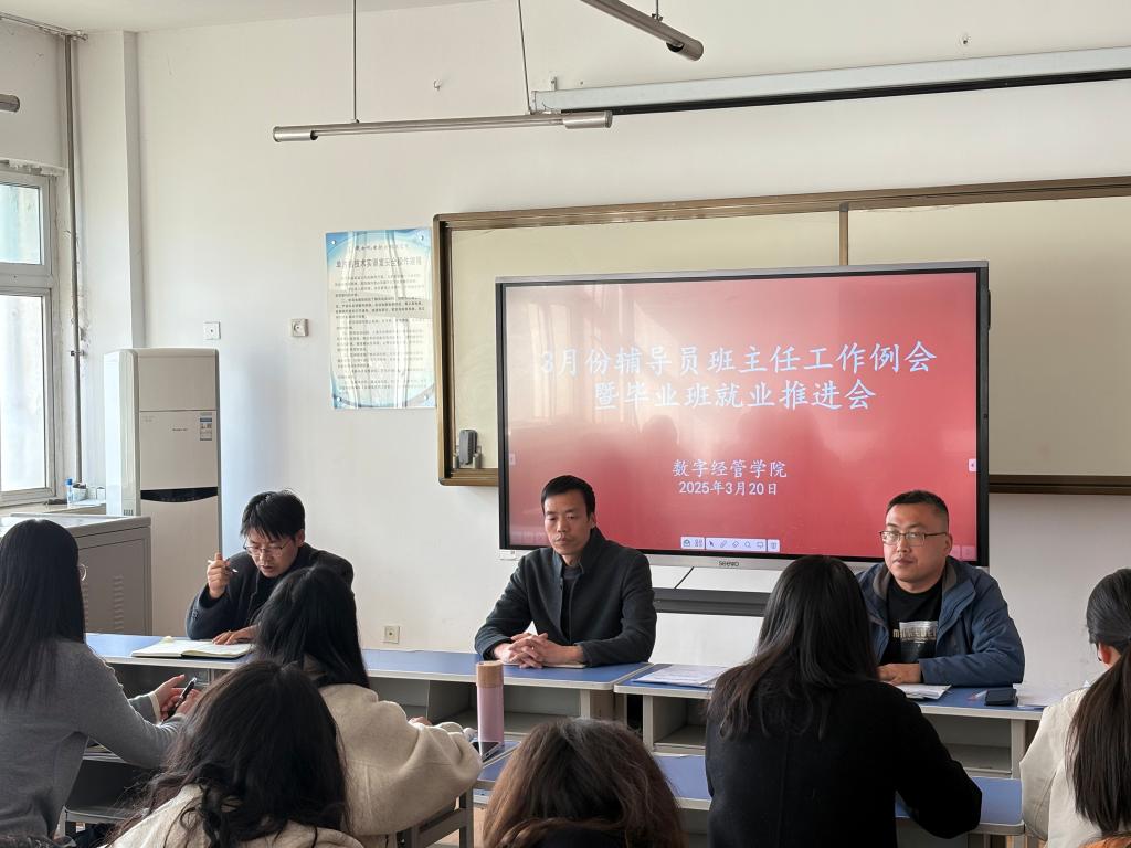 2025年3月20日下午,太阳成集团tyc522cc在电子信息大楼2207会议室召开三月份辅导员班主任工作例会暨毕业班就业推进会。太阳成集团tyc522cc党支部书记孟发军、经理杜海军出席会议,全体辅导员、班主任参加会议,会议由员工工作办公室主任杨涛主持。