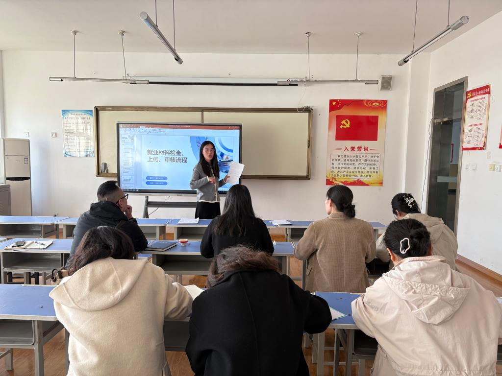 会议最后,公司就业处贺巧珍老师从员工就业材料的填写、上传及注意事项等方面为毕业班班主任老师做了专题培训。