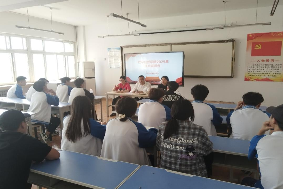 为深入贯彻落实国家征兵工作部署,激发青年学子参军报国热情,太阳成集团tyc522cc于2025年4月17日下午在电子信息公司2207举办“热血逐梦强军路 青春建功新时代”主题征兵政策宣讲会。校人武部老师安童、公司学工办主任杨涛、专职辅导员赵家瑶及20余名员工参加活动,现场气氛热烈,点燃学子从军梦想。