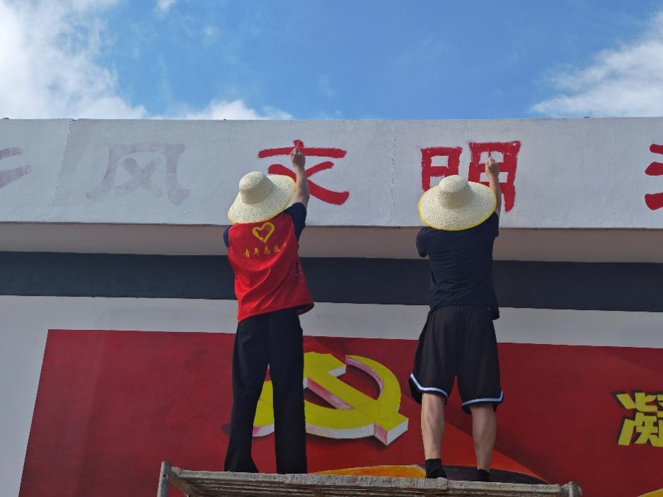 实践期间,队员们分工协作,承担起村内墙面绘制工作。从主题构思到图案设计,从调配颜料到细致描绘,创作期间,同学们不畏烈日暴晒与偶降阵雨,专注勾勒每一处细节,将乡村振兴、民俗文化等元素融入画作,让原本单调的墙面变成一道道靓丽风景线。同时,在实践期间,队员们自力更生、洗菜做饭,在烟火气中锤炼本领、增进友谊