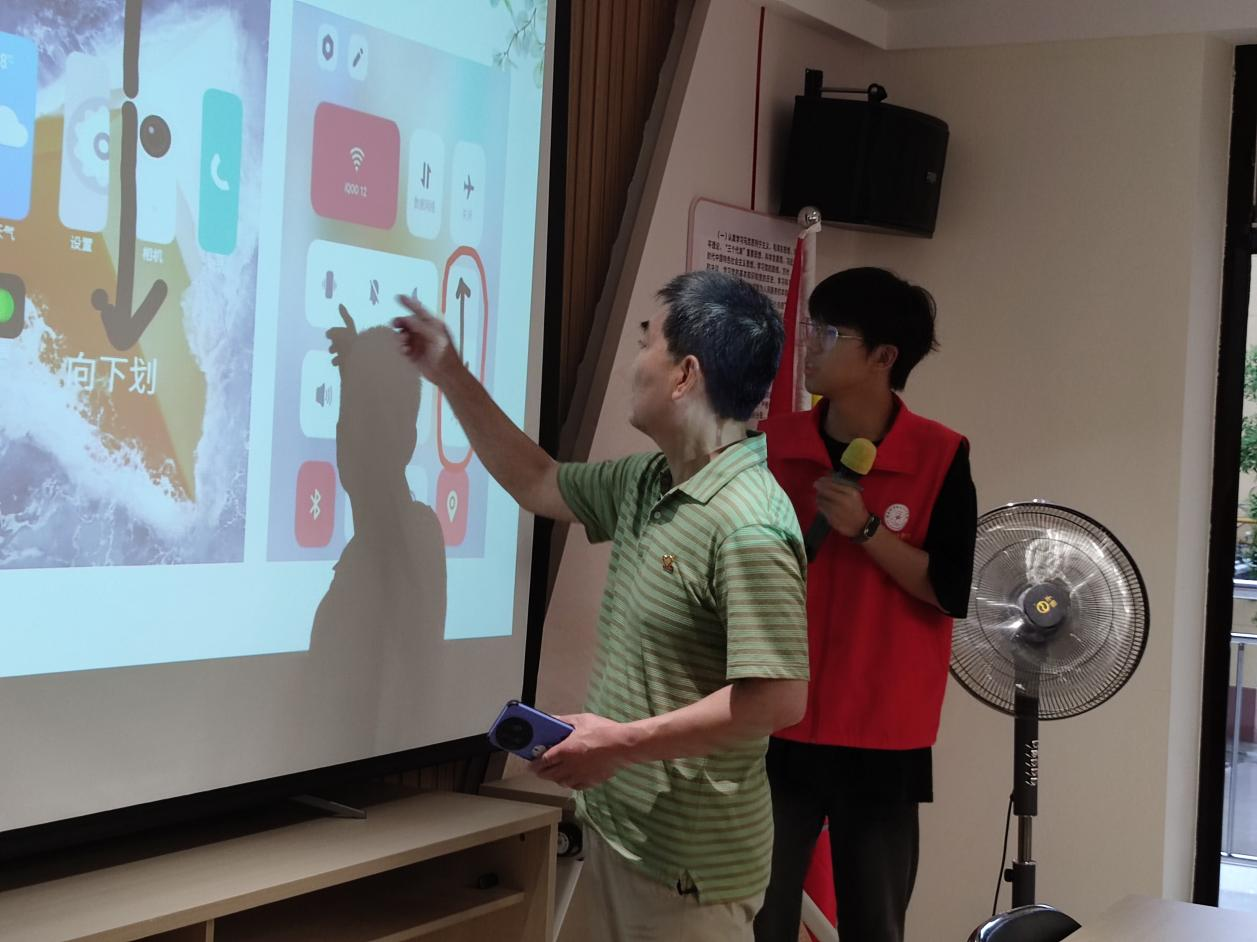 活动现场气氛热烈。在指导教师的带领下,志愿者们围绕老年人日常生活需求,耐心细致地讲解了智能手机的基本操作、抖音使用与简单视频剪辑、防范网络诈骗、线上就医与网购、智慧出行等多个实用模块。志愿者们采用“PPT全体授课”和“一对一”的教学方式,老人们学习热情高涨,积极互动、踊跃提问,课堂氛围活跃融洽