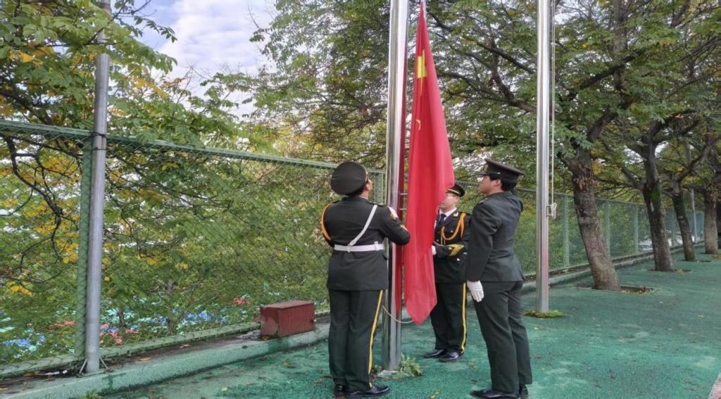 2025年10月13日清晨时分,校园仍带着几分静谧,参与仪式的师生们已身着整齐服装,有序列队。随着主持人宣布仪式正式开始,国旗护卫队队员迈着铿锵有力的步伐,护送五星红旗从队列前走过,每一步都饱含着对祖国的崇敬与热爱。当《义勇军进行曲》激昂的旋律响彻校园,鲜艳的五星红旗在全体师生的注目下缓缓升起,迎风飘扬。在场师生纷纷肃立,面向国旗行注目礼,齐唱国歌,嘹亮的歌声里满是青年学子对祖国的赤诚与担当,晨光映照下的脸庞,写满了坚定与朝气。