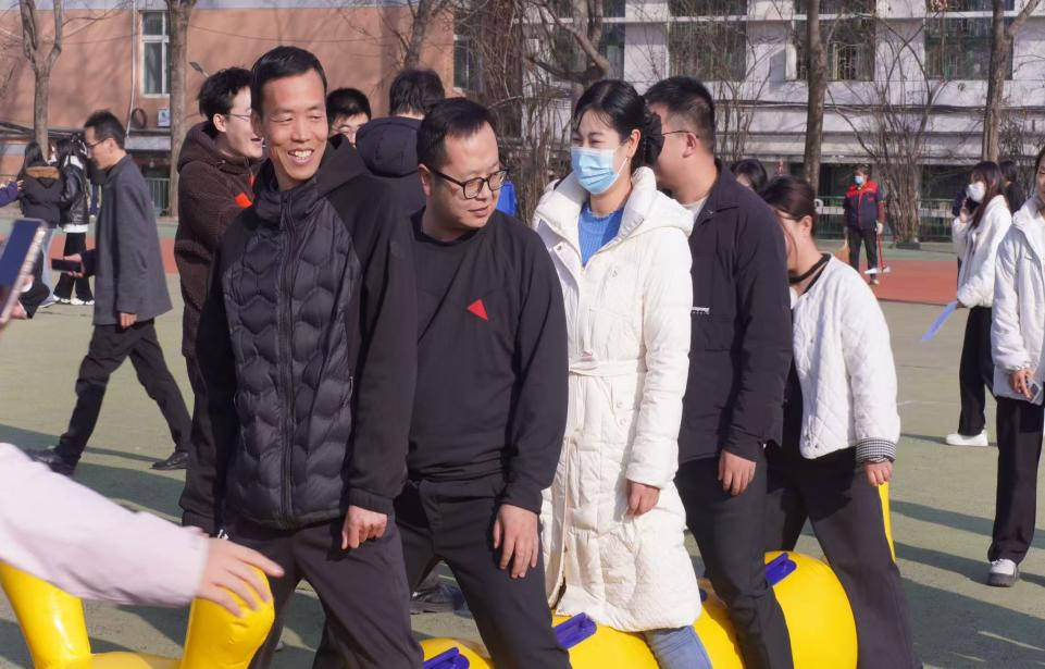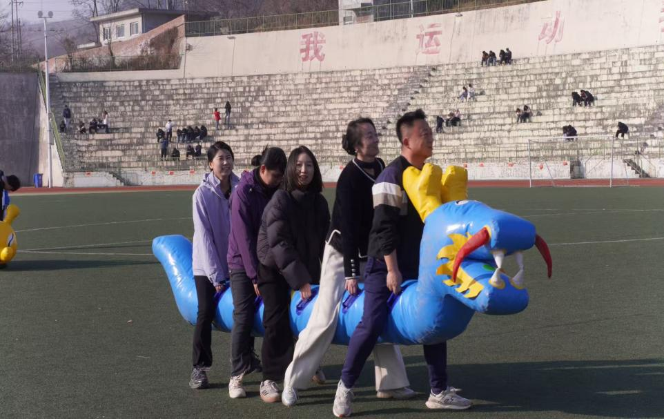 本次趣味运动会精心设置了多个兼具趣味性与协作性的比赛项目:“摸石头过河”、“两人三足”、“心心相印”、“吸管运动”以及将活动推向高潮的“毛毛虫协力跑”。在比赛中,全体师生积极参与,各小组团结一心,齐心协力,比赛在紧张激烈、友爱和谐、全力拼搏、奋勇争先的气氛中进行,赛场上充满了笑声、加油声和欢呼声。特别是最后的“毛毛虫协力跑”项目,参赛选手们骑乘在充气毛毛虫道具上,步调一致、齐声呐喊,共同向终点冲刺,将活动氛围推向最高潮,赛场内外洋溢着团结和谐的浓厚氛围。