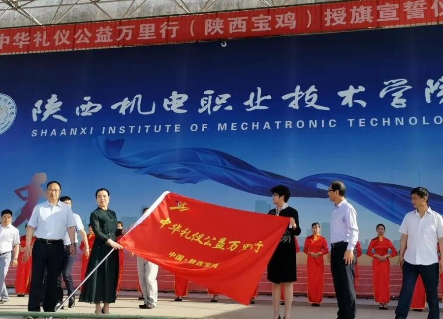 2019年6月10日上午,“弘扬中华礼仪公益万里行”陕西宝鸡站启动仪式在tyc522cc太阳成集团隆重举行并完满成功,经管与艺术公司经理邢平代表宝鸡站接旗。活动体现了公司对于校园文化建设的高度重视,对于礼仪育人的深刻理解,以及践行文明礼仪的坚定信念