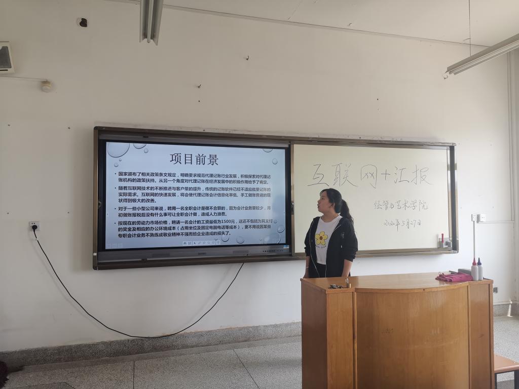 5月27日下午,在和煦的初夏时节,经管与艺术公司的老师和员工们在二级公司经理邢平的指导下,在304会计实训室开展“互联网+” 项目的第一轮演练。参赛同学充满信心,激情飞扬,思路敏捷,在座的评委老师们对每个项目进行逐一点评,梳理项目思路,抽丝剥茧,指出每个项目的优点亮点和需改进之处。