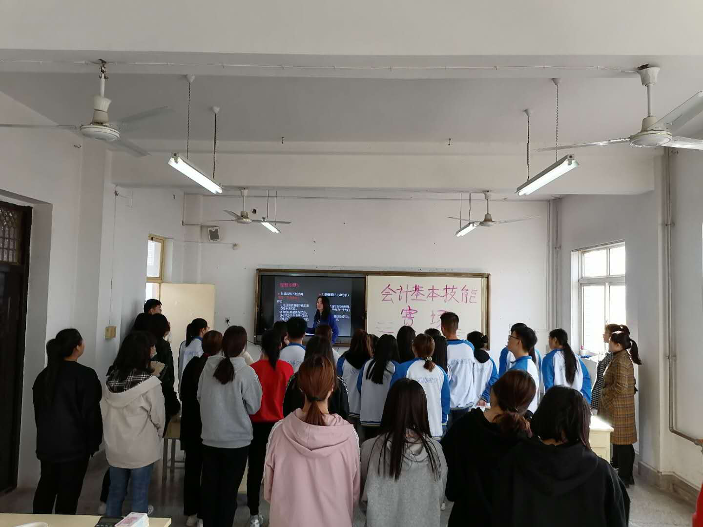 经管与艺术公司邢经理查看会计基本技能比赛情况,亲切的询问员工准备比赛情况并叮嘱员工认真细心做账。