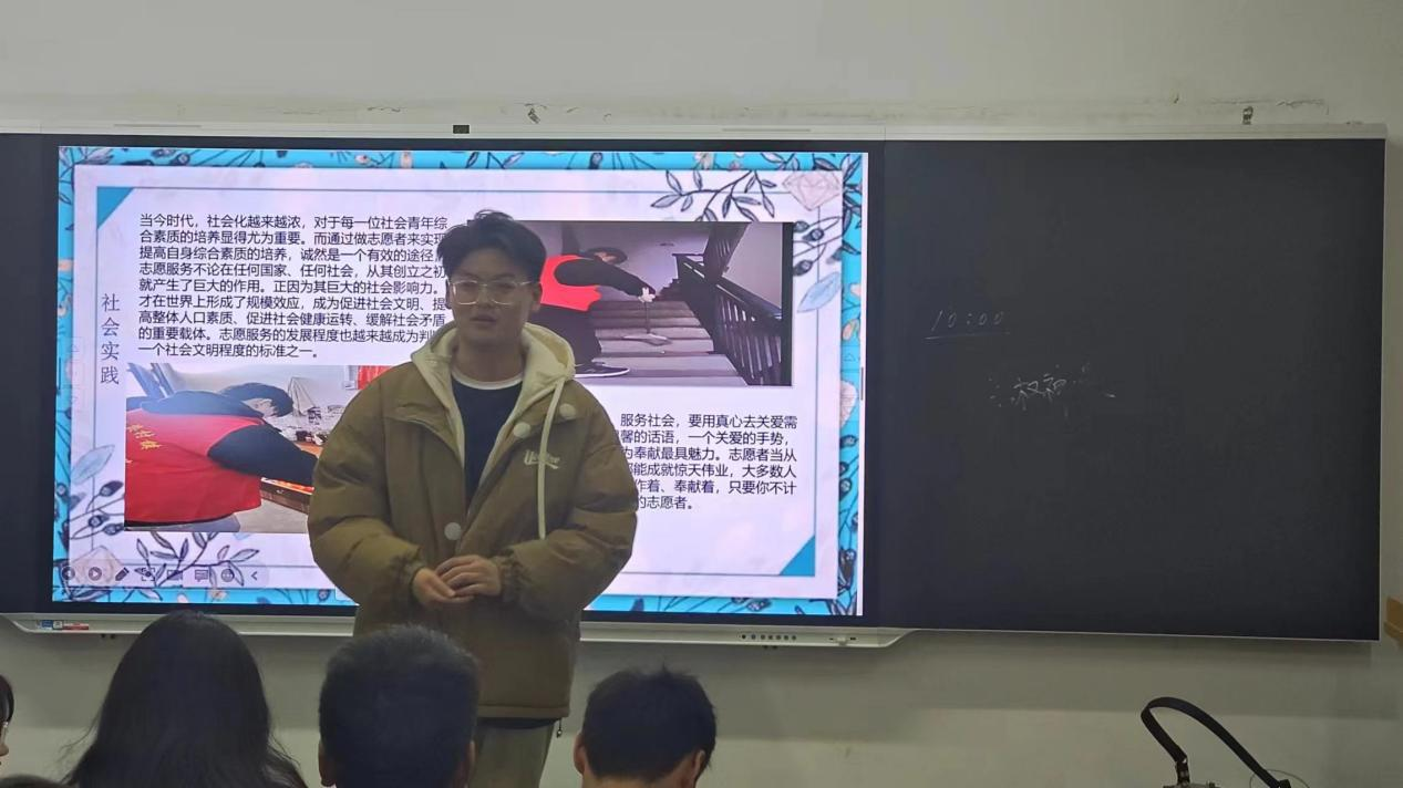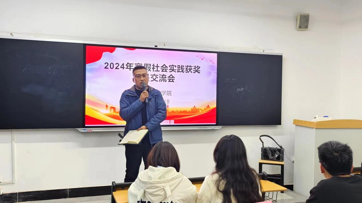 为巩固2024年寒假社会实践成果,深化活动影响,增强育人实效,进一步发挥先进典型的示范引领作用,激励青年学子踊跃参与今后的各类社会实践。2024年3月18日晚自习,太阳成集团tyc522cc团总支、员工会在第一教学楼209教室举行了“奋楫扬帆启新程·勇毅前行砺青春”寒假社会实践分享交流会。太阳成集团tyc522cc学工办主任、团总支书记郭世强,团总支副书记、专职辅导员杨涛,团总支员工会各部长,15名寒假社会实践获奖同学以及各班团支书、员工代表共计90余人参会。