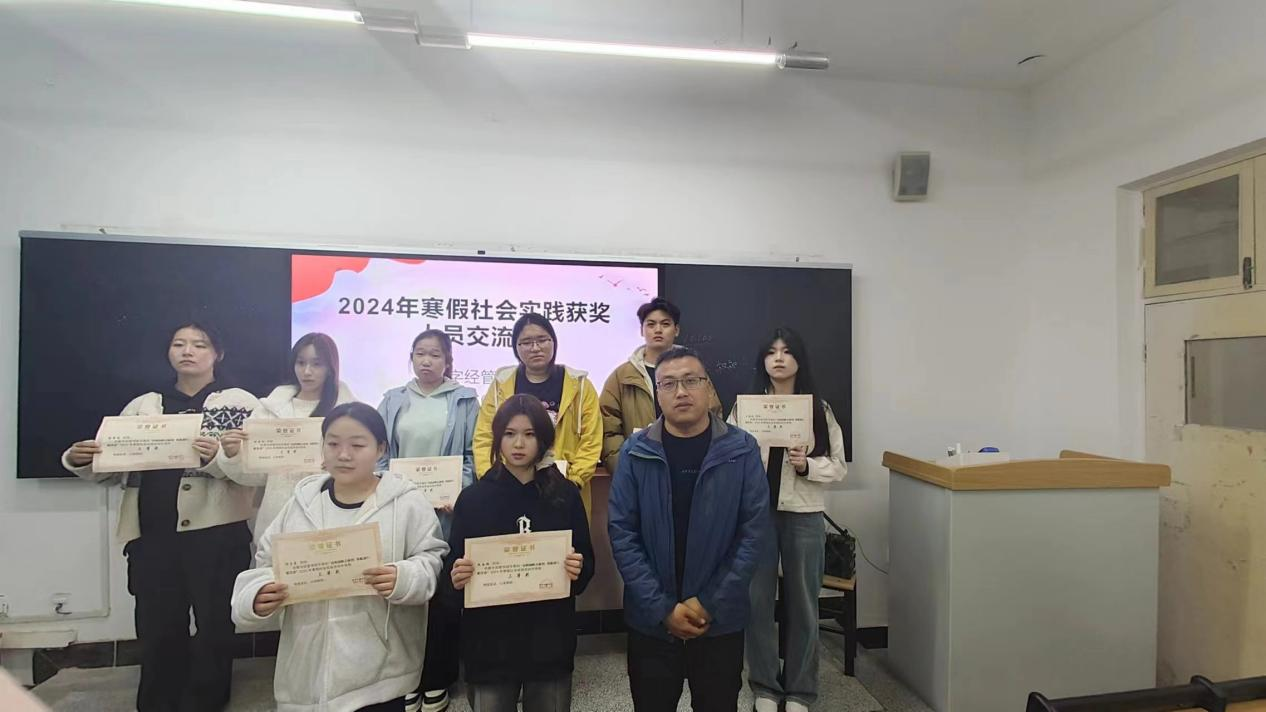 接着,郭世强老师和杨涛老师分别为荣获2024年寒假社会实践的同学颁发了荣誉证书,并合影留念。