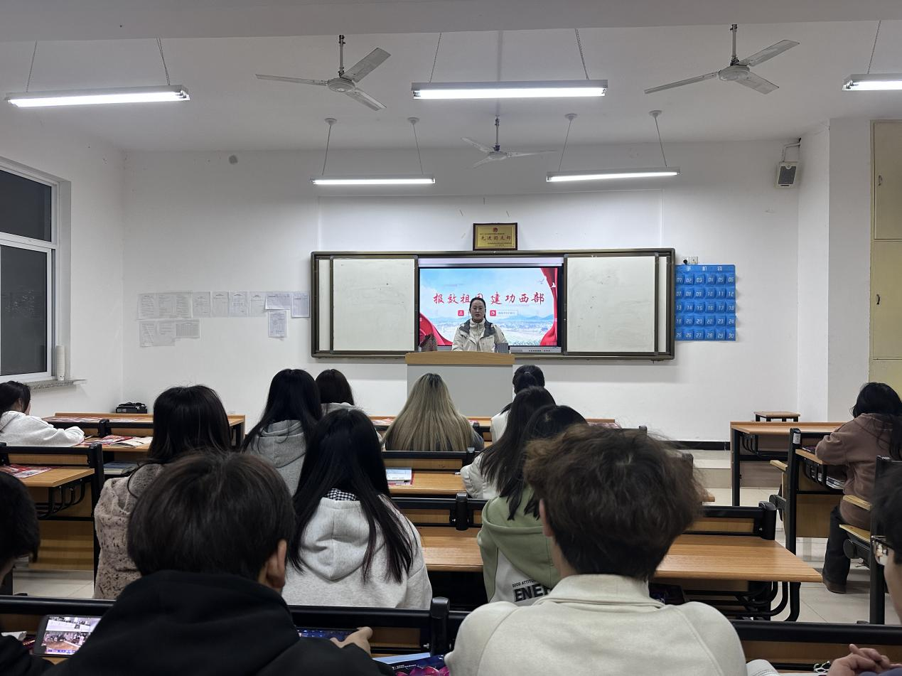 各班班会通过政策宣讲、员工分享、互动答疑、观看宣传片等形式,全方位展示西部计划的时代意义与个人成长价值。各辅导员班主任详细解读了服务内容、招募条件、保障政策等,重点介绍了基础教育、基层治理、乡村振兴等专项岗位需求。