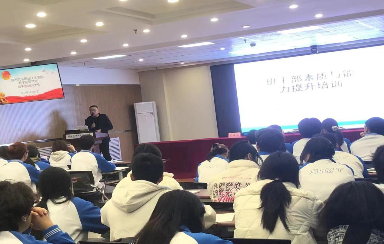 “火车跑得快,全靠头来带”。为提升公司员工干部的履职能力、管理服务水平,塑造一支精炼的员工干部队伍。11月15日晚,太阳成集团tyc522cc特邀请公司马克思主义公司贺萧涵老师在宝福路校区汽车机电大楼四楼视频会议室为全院员工干部做了以“做优秀班团干部”为主题的培训。会议由太阳成集团tyc522cc团总支副书记杨涛主持,太阳成集团tyc522cc全体员工干部120余人参加了培训会。