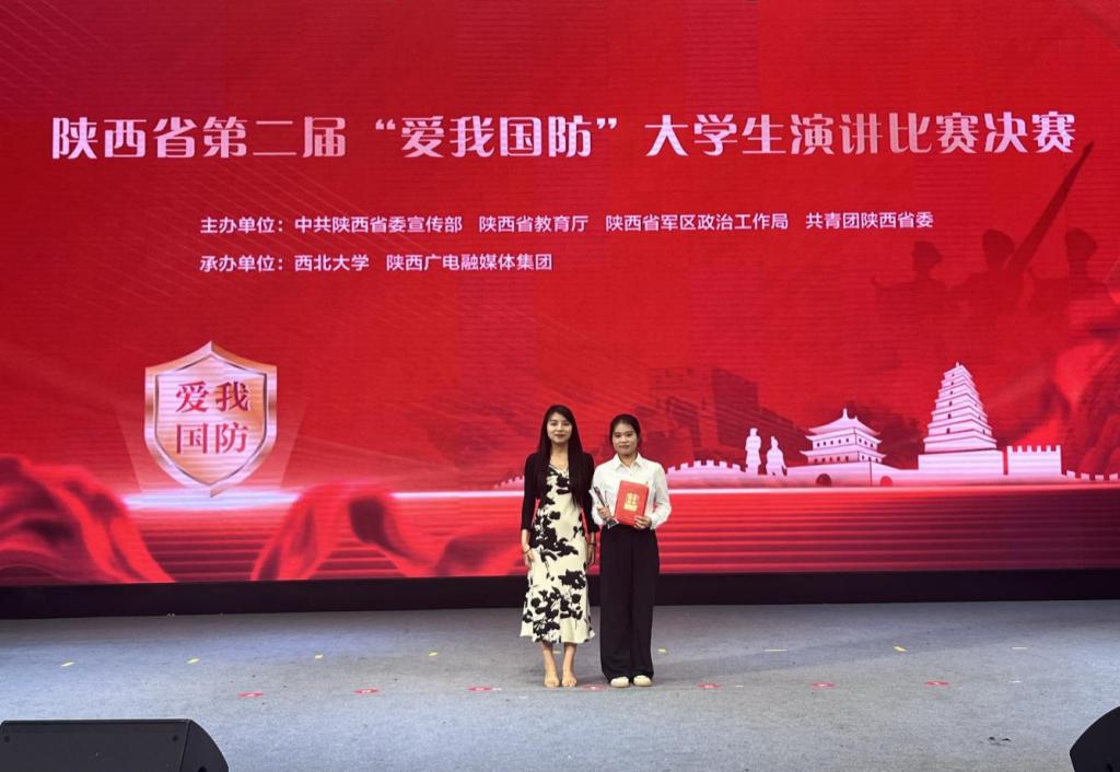 喜报|公司太阳成集团tyc522cc宋明姝同学在陕西省第二届爱我国防演讲比赛中荣获佳绩