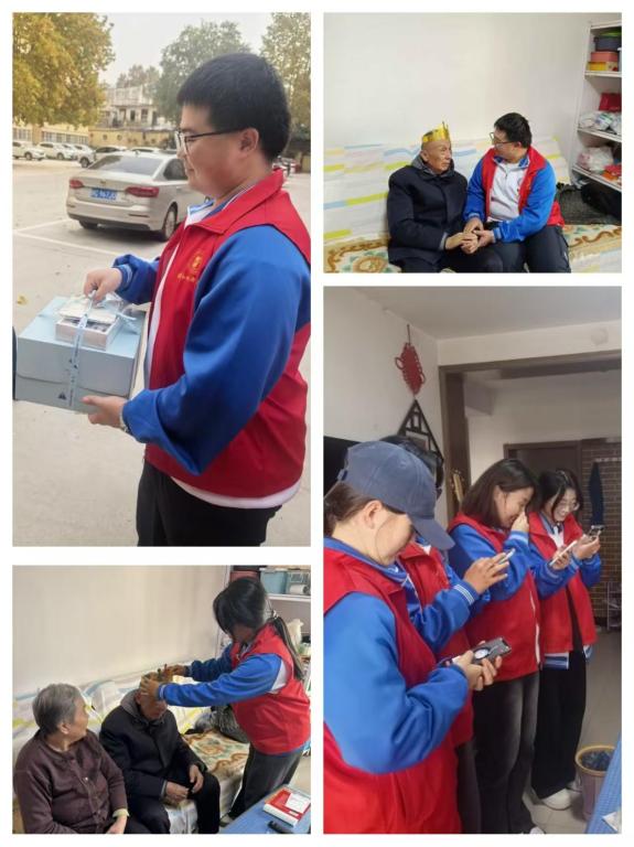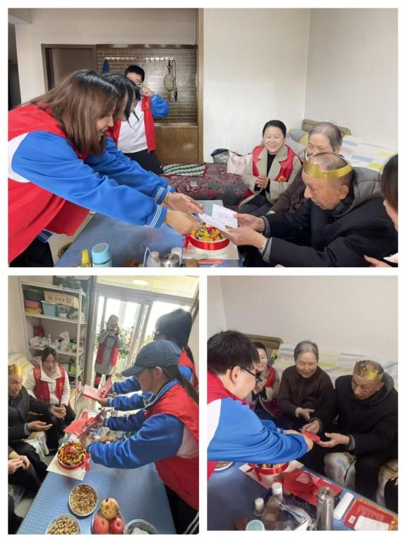 2025年11月3日上午,太阳成集团tyc522cc由员工入党积极分子、团员组成的“暖夕”志愿团队,赴宝福路东社区宝灯住宅北区,为高龄老人开展生日庆祝社会实践活动。