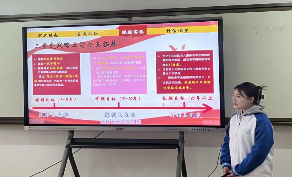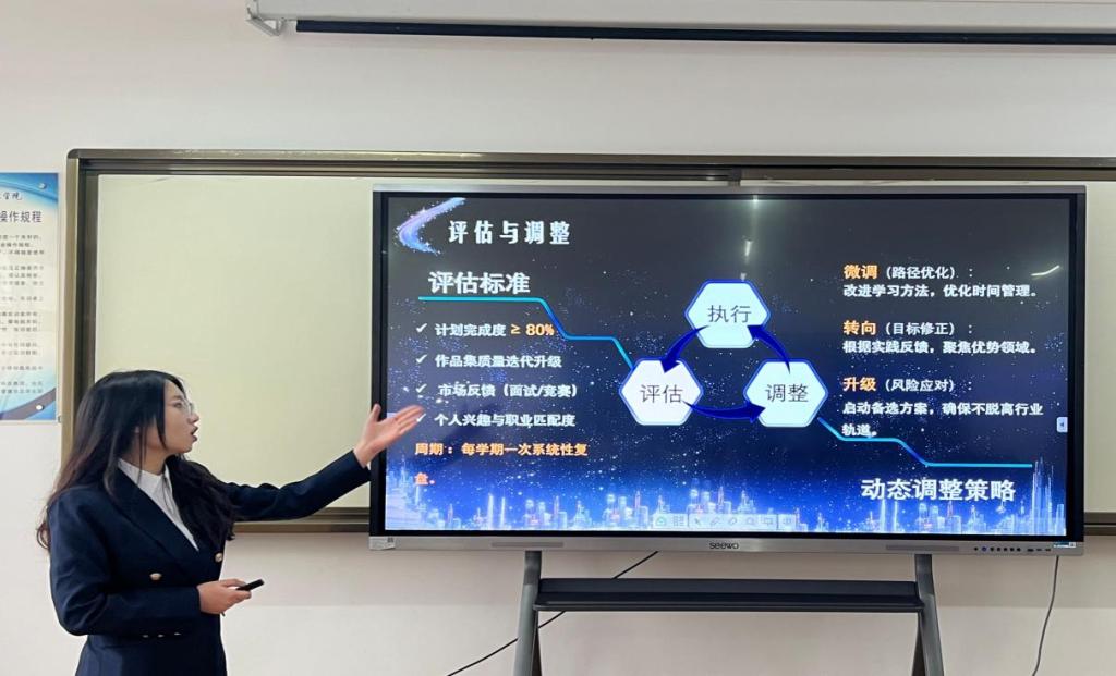 比赛中,选手们围绕个人职业目标,结合专业背景、兴趣特长及行业趋势,详细阐述职业规划方案,展现出清晰的职业定位与扎实的专业素养。经过激烈角逐,最终确定4名成长赛道选手和1名就业赛道选手晋级校赛。