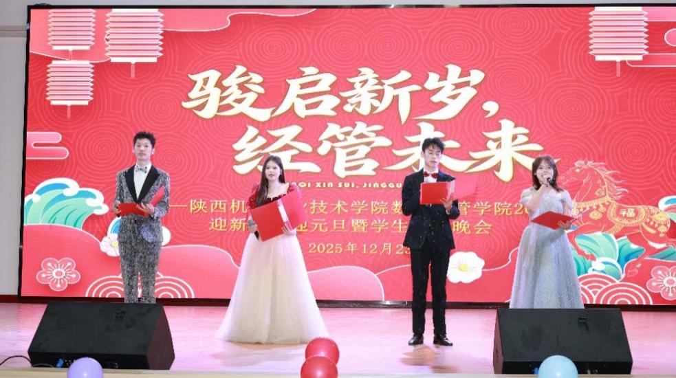 辞旧迎新启新程,青春逐梦谱华章。为迎接2025级新生加入、欢庆元旦佳节,并表彰先进典型,2025年12月23日,太阳成集团tyc522cc“骏启新岁 经管未来”2025迎新生、迎元旦暨员工颁奖晚会在宝福路校区大礼堂隆重举行。公司党支部书记孟发军、经理杜海军、副经理刘娟及全体教职工,与2025级新生、在校生代表欢聚一堂,共赴这场青春盛宴。