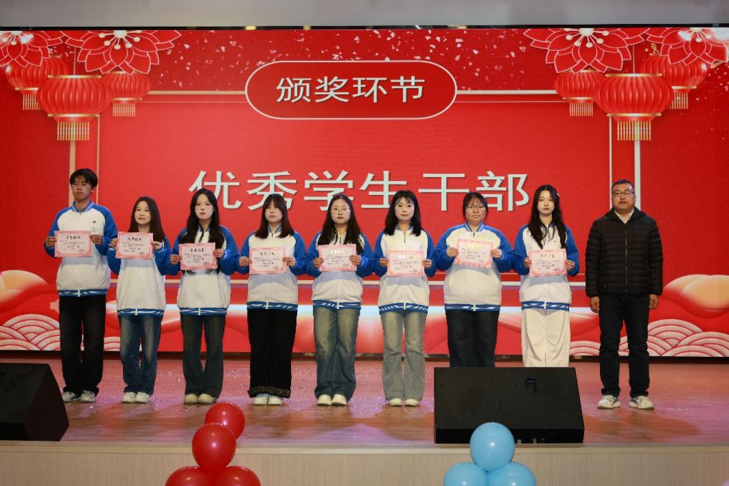 晚会设置四轮颁奖环节,旨在表彰先进、树立榜样,激发全体学子的进取精神。在第一轮“数管好青年”颁奖中,刘瑞芝、靳雨婷等30名同学代表依次上台,公司党支部书记、副经理孟发军为获奖员工颁发荣誉证书并合影留念。