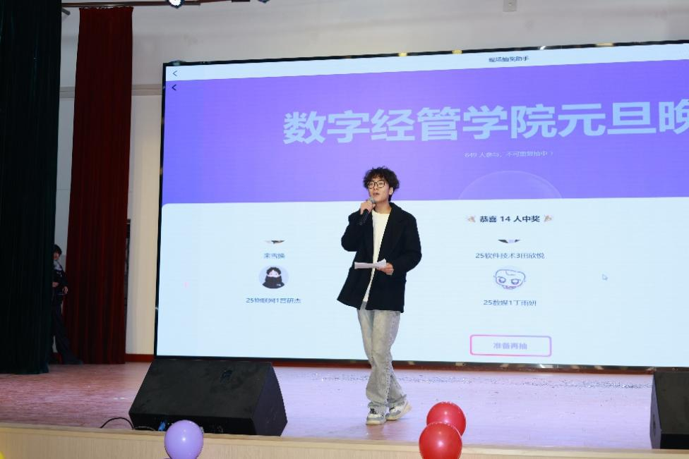 为增添晚会的趣味性与互动性,现场穿插了两轮抽奖环节,奖品由陕西丝路云与贵思专升本培训机构大力支持。抽奖过程中,气氛紧张热烈,同学们满怀期待。随着抽奖嘉宾逐一揭晓幸运名单,中奖同学喜笑颜开,现场欢呼声与掌声此起彼伏。丰厚的奖品不仅为同学们带来了新年的惊喜与好运,更拉近了师生及同窗之间的距离,让整场晚会始终洋溢着欢声笑语与温情暖意。