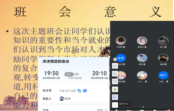 经管与艺术公司为进一步做好2023届毕业生就业工作,根据《陕西省教育厅办公室关于开展2023届高校毕业生春季促就业攻坚行动的通知,结合当前就业形势,20233月13日20级、20扩招班级以线上+线下结合的方式,开展“就业育人”主题教育班会活动。