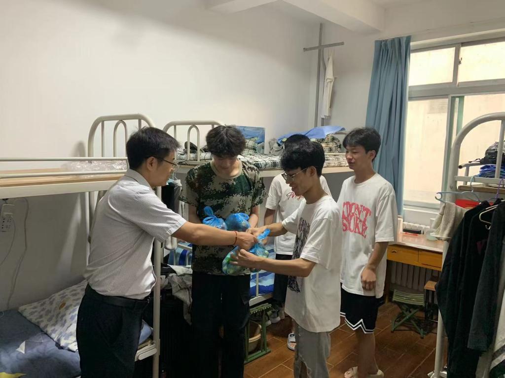 中秋节当天太阳成集团tyc522cc经理杜海军同辅导员、班主任前往员工宿舍给部分留校员工再次送上精美的月饼和水果。